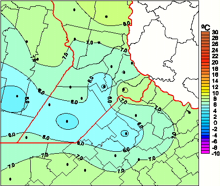 Mapa de temperaturas medias de las las últimas 72 horas.