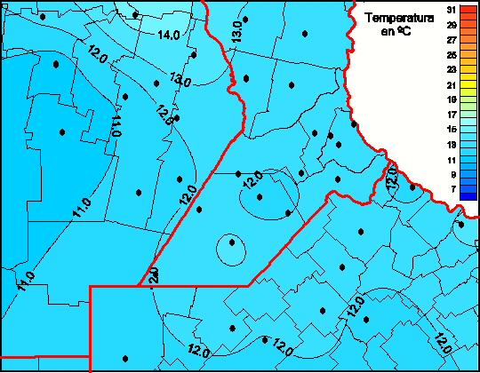 Mapa de temperaturas medias de las las últimas 96 horas.(Desde las 8:00AM hasta las 8:00AM). Se actualiza a las 10:00hs.