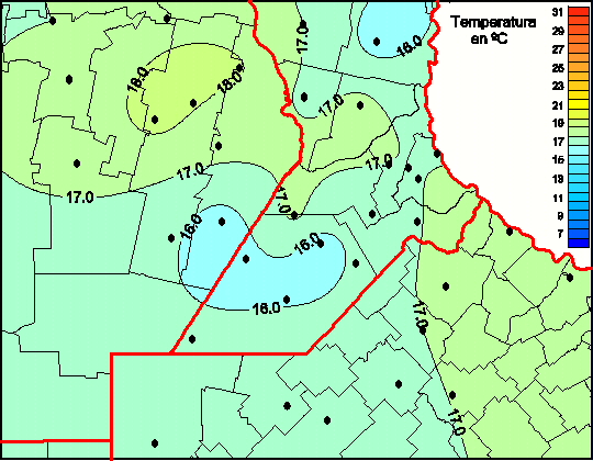 Mapa de temperaturas medias de las las últimas 72 horas.(Desde las 8:00AM hasta las 8:00AM). Se actualiza a las 10:00hs.