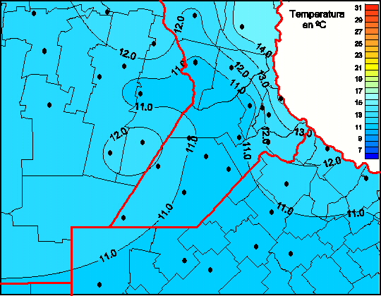 Mapa de temperaturas medias de las las últimas 72 horas.(Desde las 8:00AM hasta las 8:00AM). Se actualiza a las 10:00hs.