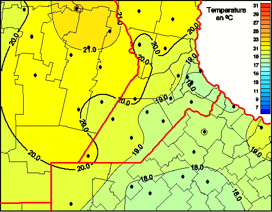 Mapa de temperaturas medias de las las últimas 96 horas.(Desde las 8:00AM hasta las 8:00AM). Se actualiza a las 10:00hs.