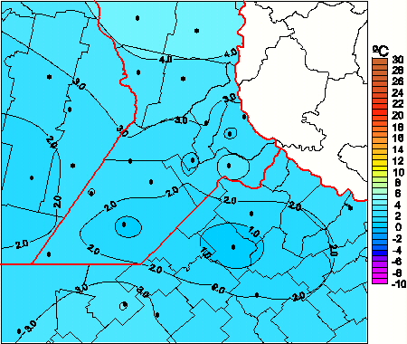 Mapa de temperaturas medias de las las últimas 72 horas.(Desde las 8:00AM hasta las 8:00AM). Se actualiza a las 10:00hs.