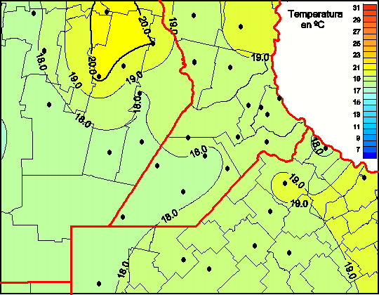 Mapa de temperaturas medias de las las últimas 72 horas.