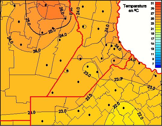 Mapa de temperaturas medias de las las últimas 96 horas.(Desde las 8:00AM hasta las 8:00AM). Se actualiza a las 10:00hs.