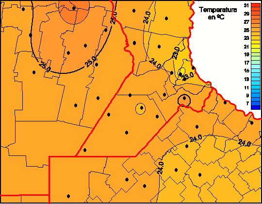 Mapa de temperaturas medias de las las últimas 72 horas.