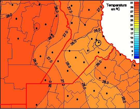 Mapa de temperaturas medias de las las últimas 72 horas.(Desde las 8:00AM hasta las 8:00AM). Se actualiza a las 10:00hs.