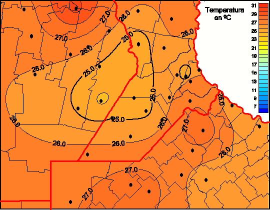 Mapa de temperaturas medias de las las últimas 72 horas.