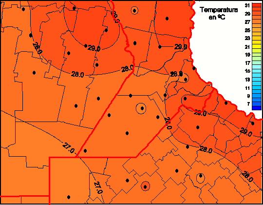 Mapa de temperaturas medias de las las últimas 72 horas.(Desde las 8:00AM hasta las 8:00AM). Se actualiza a las 10:00hs.