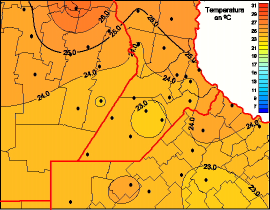 Mapa de temperaturas medias de las las últimas 72 horas.(Desde las 8:00AM hasta las 8:00AM). Se actualiza a las 10:00hs.