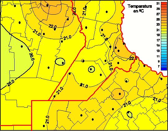 Mapa de temperaturas medias de las las últimas 72 horas.