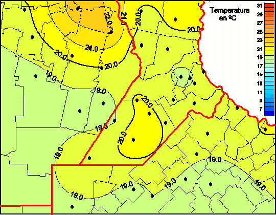 Mapa de temperaturas medias de las las últimas 72 horas.