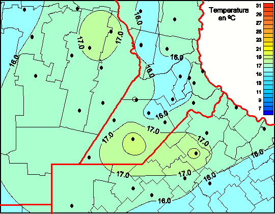 Mapa de temperaturas medias de las las últimas 96 horas.(Desde las 8:00AM hasta las 8:00AM). Se actualiza a las 10:00hs.