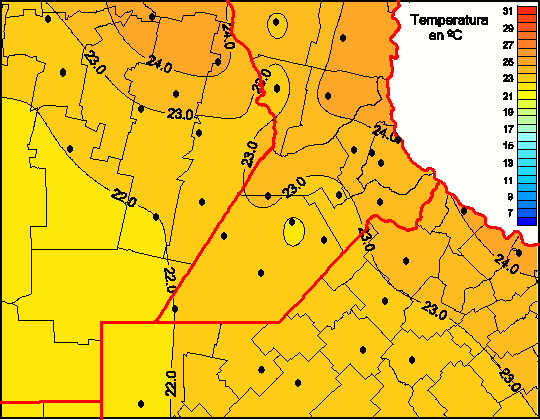 Mapa de temperaturas medias de las las últimas 72 horas.