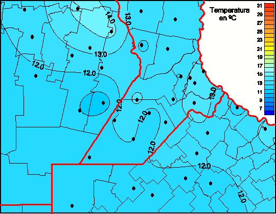 Mapa de temperaturas medias de las las últimas 72 horas.(Desde las 8:00AM hasta las 8:00AM). Se actualiza a las 10:00hs.
