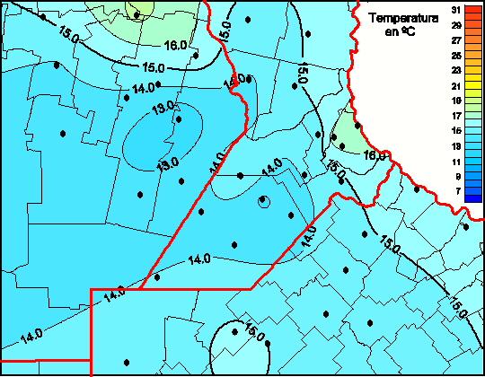 Mapa de temperaturas medias de las las últimas 72 horas.