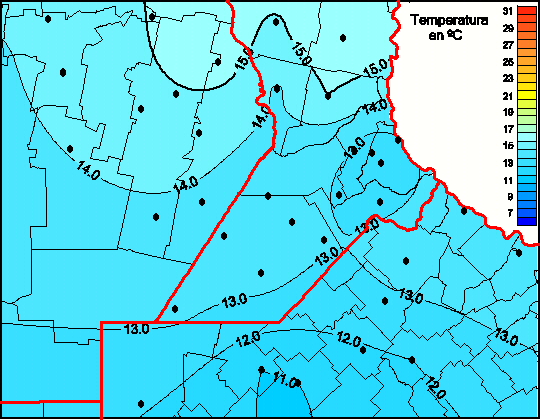 Mapa de temperaturas medias de las las últimas 72 horas.