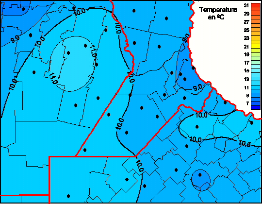 Mapa de temperaturas medias de las las últimas 48 horas.(Desde las 8:00AM hasta las 8:00AM). Se actualiza a las 10:00hs.