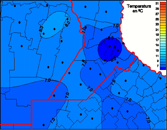 Mapa de temperaturas medias de las las últimas 72 horas.(Desde las 8:00AM hasta las 8:00AM). Se actualiza a las 10:00hs.
