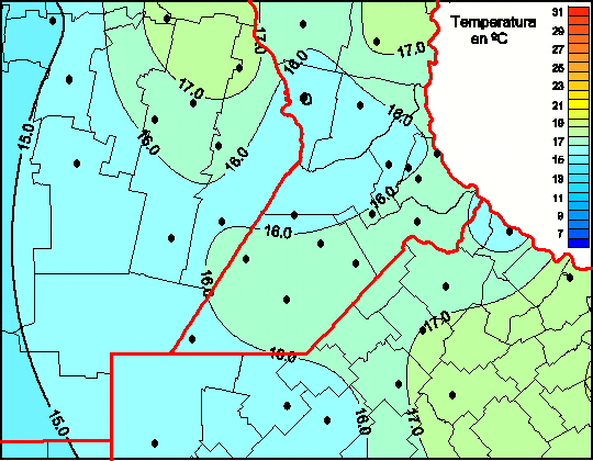 Mapa de temperaturas medias de las las últimas 72 horas.
