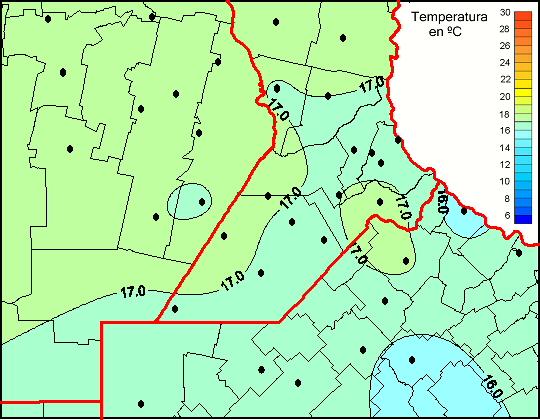 Mapa de temperaturas medias de las las últimas 72 horas.