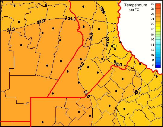 Mapa de temperaturas medias de las las últimas 72 horas.