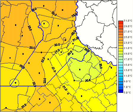 Mapa de temperaturas medias de las las últimas 72 horas.(Desde las 8:00AM hasta las 8:00AM). Se actualiza a las 10:00hs.