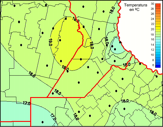 Mapa de temperaturas medias de las las últimas 72 horas.
