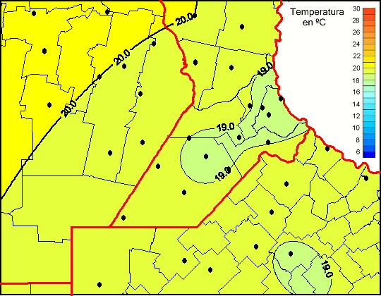 Mapa de temperaturas medias de las las últimas 72 horas.