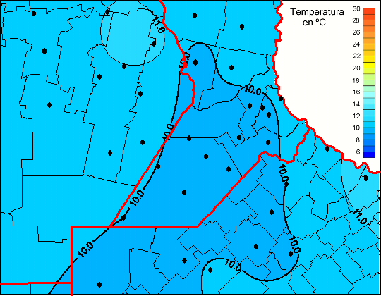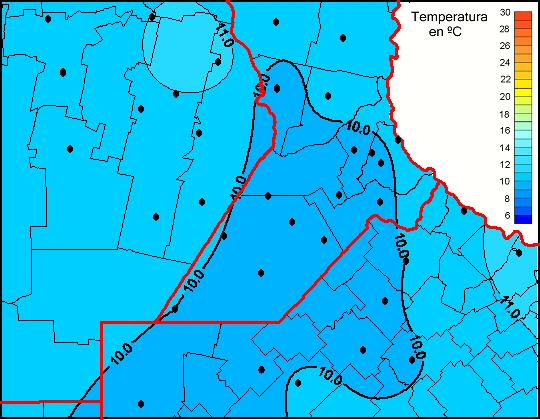 Mapa de temperaturas medias de las las últimas 96 horas.(Desde las 8:00AM hasta las 8:00AM). Se actualiza a las 10:00hs.