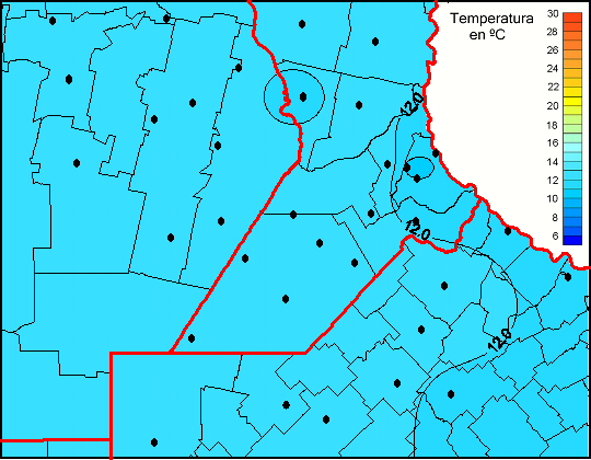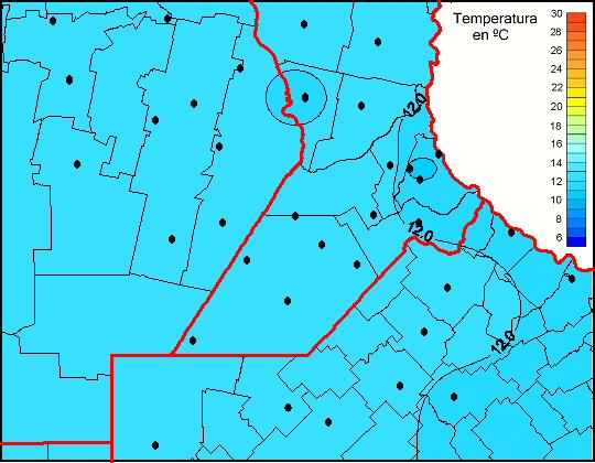 Mapa de temperaturas medias de las las últimas 72 horas.(Desde las 8:00AM hasta las 8:00AM). Se actualiza a las 10:00hs.