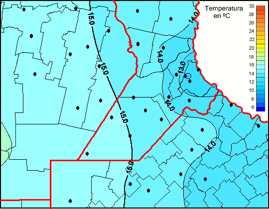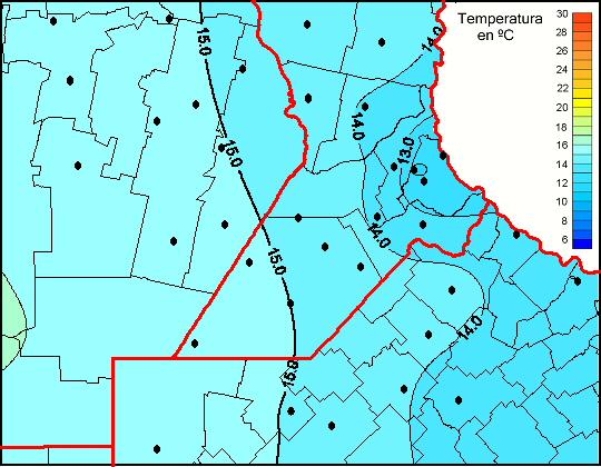 Mapa de temperaturas medias de las las últimas 72 horas.