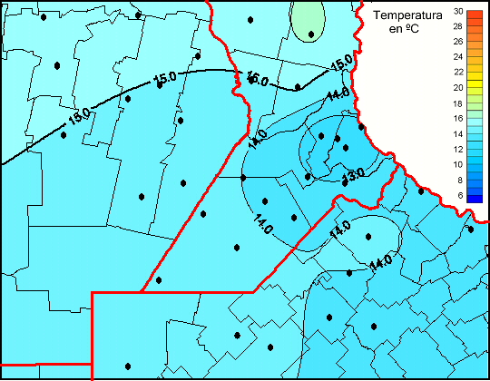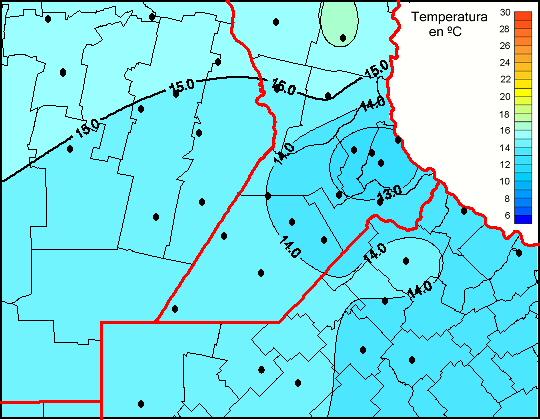 Mapa de temperaturas medias de las las últimas 72 horas.