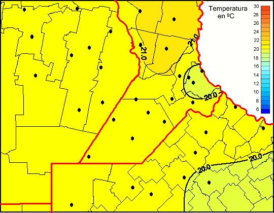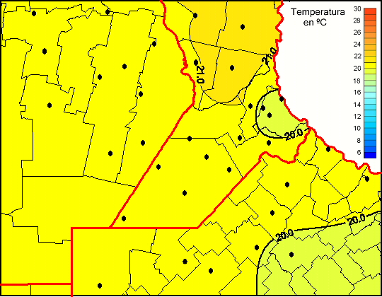 Mapa de temperaturas medias de las las últimas 72 horas.(Desde las 8:00AM hasta las 8:00AM). Se actualiza a las 10:00hs.