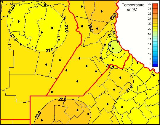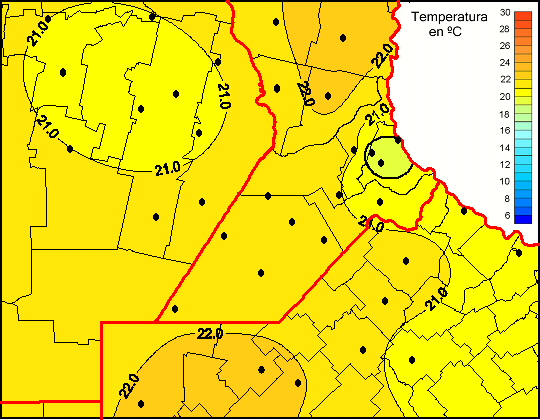 Mapa de temperaturas medias de las las últimas 72 horas.(Desde las 8:00AM hasta las 8:00AM). Se actualiza a las 10:00hs.