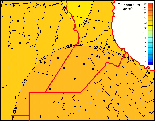 Mapa de temperaturas medias de las las últimas 0 horas.