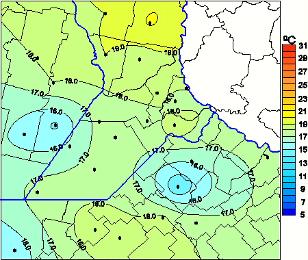 Mapa de temperaturas medias de las las últimas 72 horas.