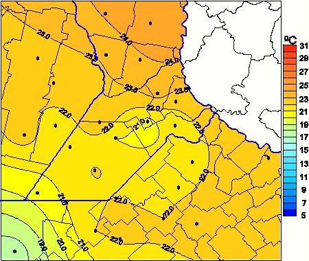 Mapa de temperaturas medias de las las últimas 72 horas.(Desde las 8:00AM hasta las 8:00AM). Se actualiza a las 10:00hs.