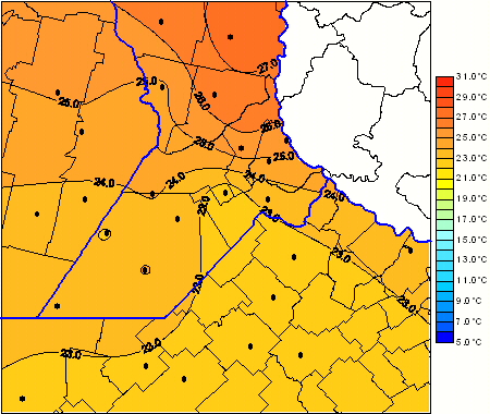 Mapa de temperaturas medias de las las últimas 96 horas.(Desde las 8:00AM hasta las 8:00AM). Se actualiza a las 10:00hs.