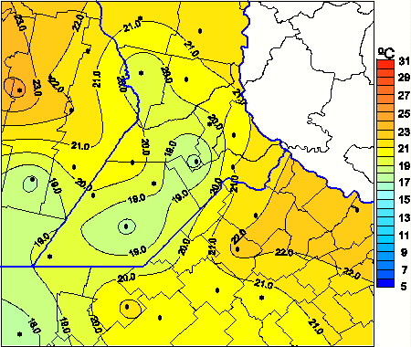 Mapa de temperaturas medias de las las últimas 72 horas.(Desde las 8:00AM hasta las 8:00AM). Se actualiza a las 10:00hs.