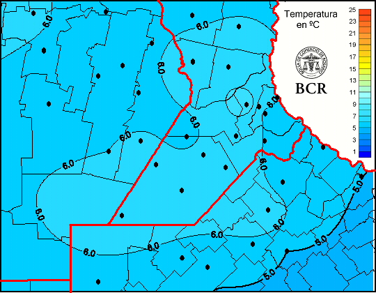 Mapa de temperaturas medias de las las últimas 24 horas.