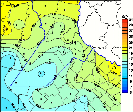 Mapa de temperaturas medias de las las últimas 72 horas.