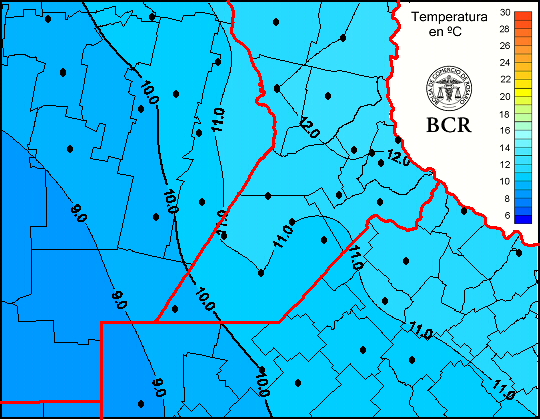 Mapa de temperaturas medias de las las últimas 24 horas.
