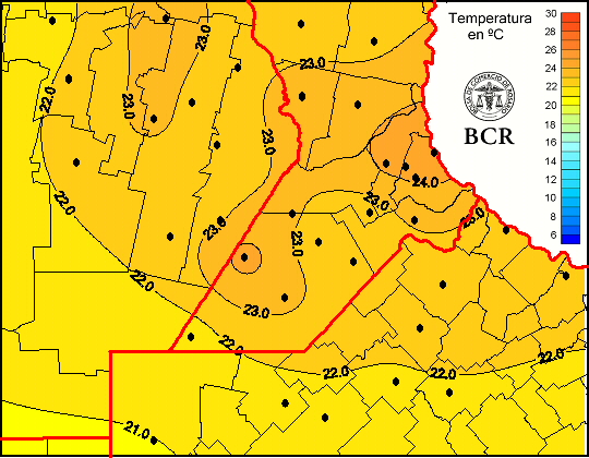 Mapa de temperaturas medias de las las últimas 24 horas.