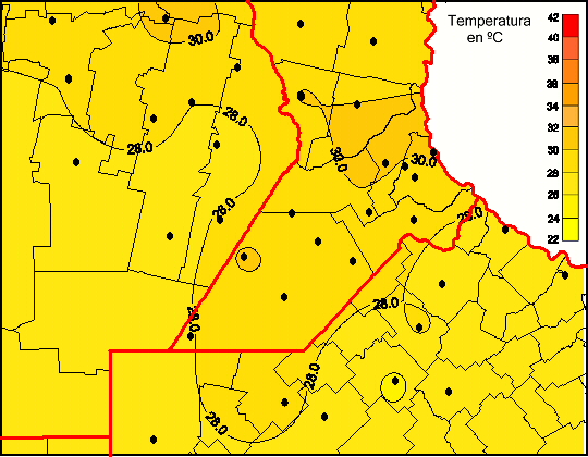 Mapa de temperaturas medias de las las últimas 24 horas.
