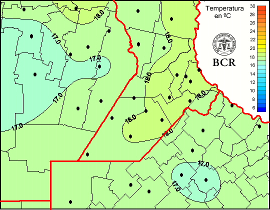 Mapa de temperaturas medias de las las últimas 24 horas.