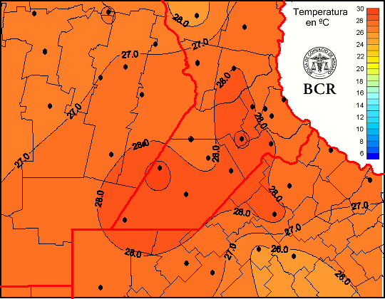 Mapa de temperaturas medias de las las últimas 24 horas.