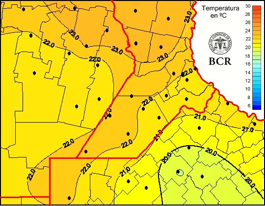 Mapa de temperaturas medias de las las últimas 24 horas.