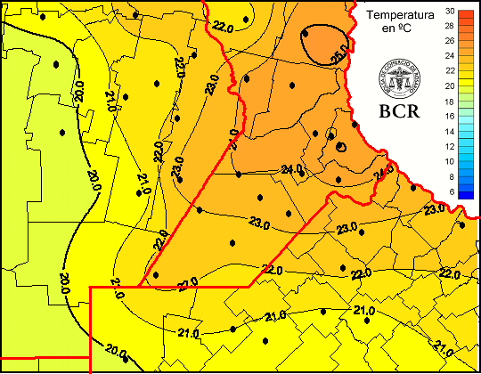 Mapa de temperaturas medias de las las últimas 24 horas.