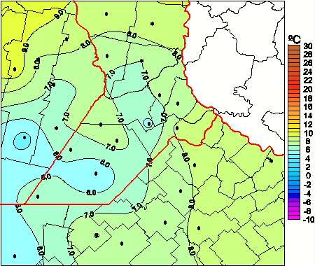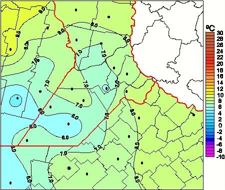 Mapa de temperaturas medias de las las últimas 96 horas.(Desde las 8:00AM hasta las 8:00AM). Se actualiza a las 10:00hs.