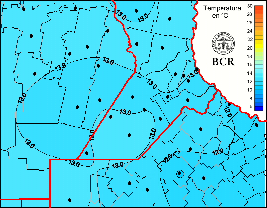 Mapa de temperaturas medias de las las últimas 24 horas.